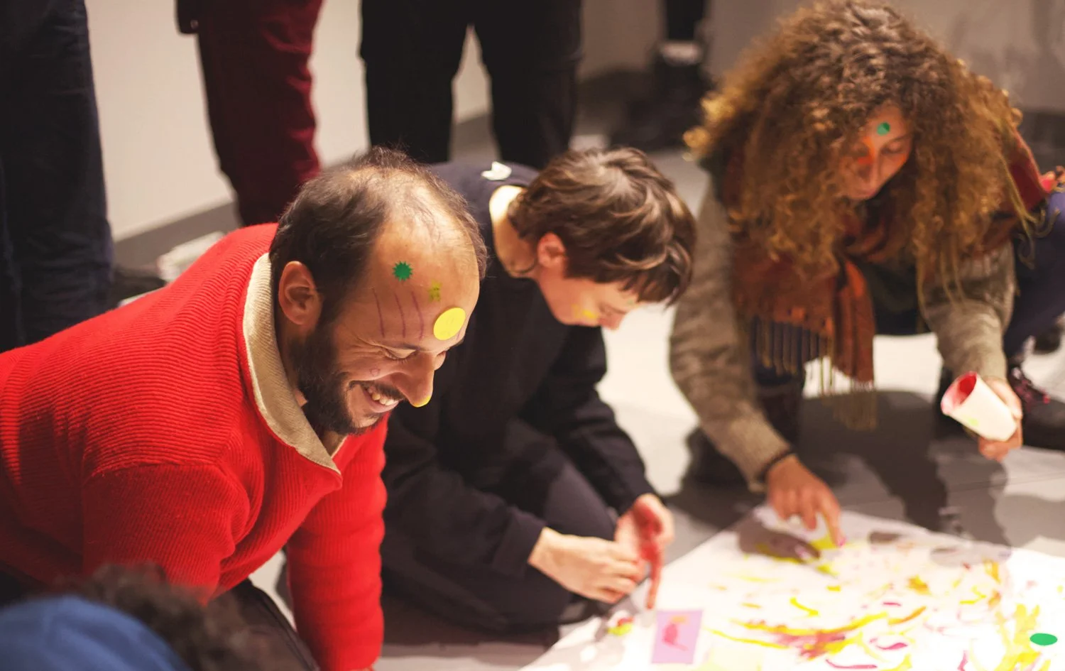 At the beginning, many of us struggled. We cannot just acknowledge there is an emotion manifesting in us or in another, we need to “solve” it! “Are you sad? Let me cheer you up!” kind of attitude. And by observing this dynamic we finally saw that the need to “solve” the emotion another person may be experiencing, speaks more about ourself and the fact we are in discomfort seeing someone else suffering and need to feel useful takes us far from simply being present and testify that emotion is in the room. We started from this in a harsh way, with some resistance because we are taught like this. And then slowly, step by step, we learned how to approach emotions without rushing to act on them. We practiced staying present, giving them names, describing their textures, locating them in the body, and creating safe, artsy and participative spaces where others could do the same.